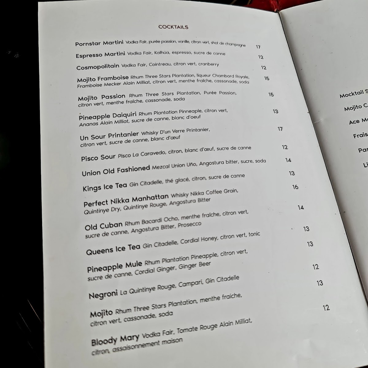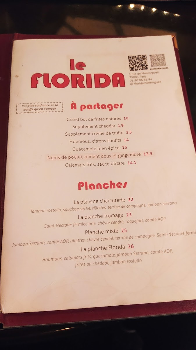 Florida - 75001 Paris Menu
